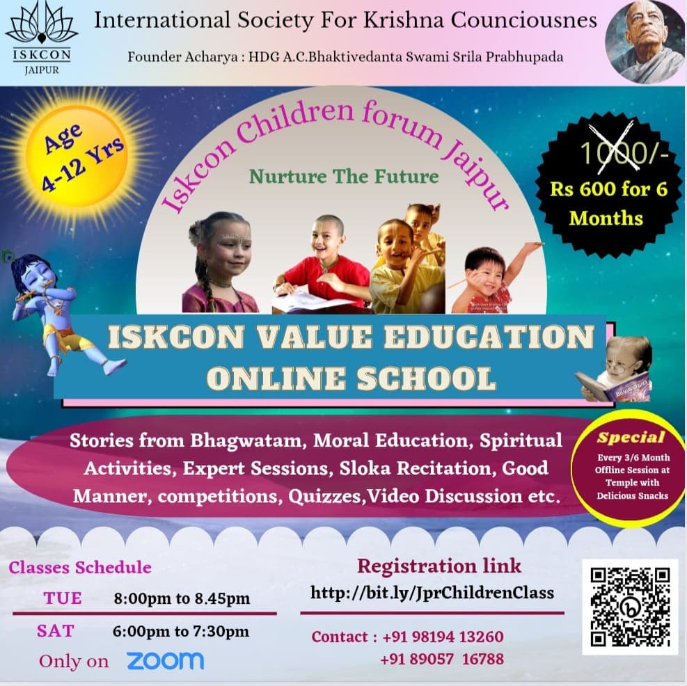 When a child's foundation is strong, it sets the stage for a lifetime of happiness. To help build this foundation, the ISKCON Temple in Jaipur has launched the ISKCON Value Education Online School. This unique program blends traditional academics with essential life values, emphasizing compassion, integrity, respect, and discipline. With engaging online classes led by experienced educators, children explore cultural and ethical teachings through storytelling, activities, and discussions, ensuring they grow into well-rounded individuals with a strong moral compass.